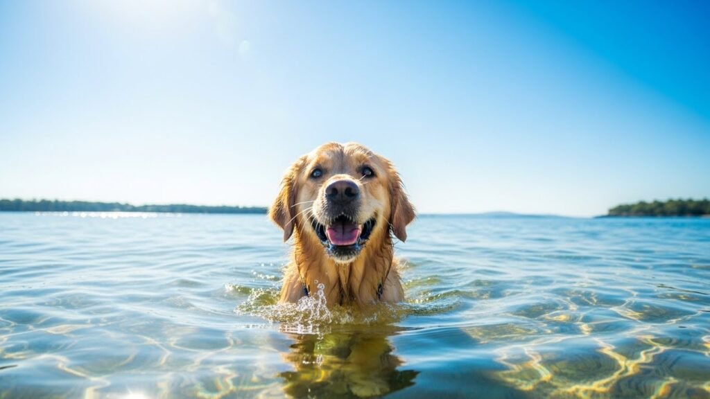 Golden Retrievers have water-resistant coats and strong, powerful tails that act like rudders. Many Goldens naturally love swimming and playing in water.