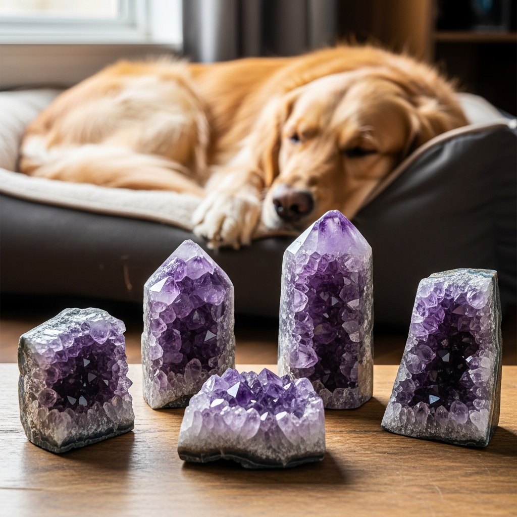 * **Creating a Comfortable “Healing Space”:** If your dog is recovering from an illness or injury and needs a quiet, low-stress environment, amethyst could contribute to that peaceful atmosphere.