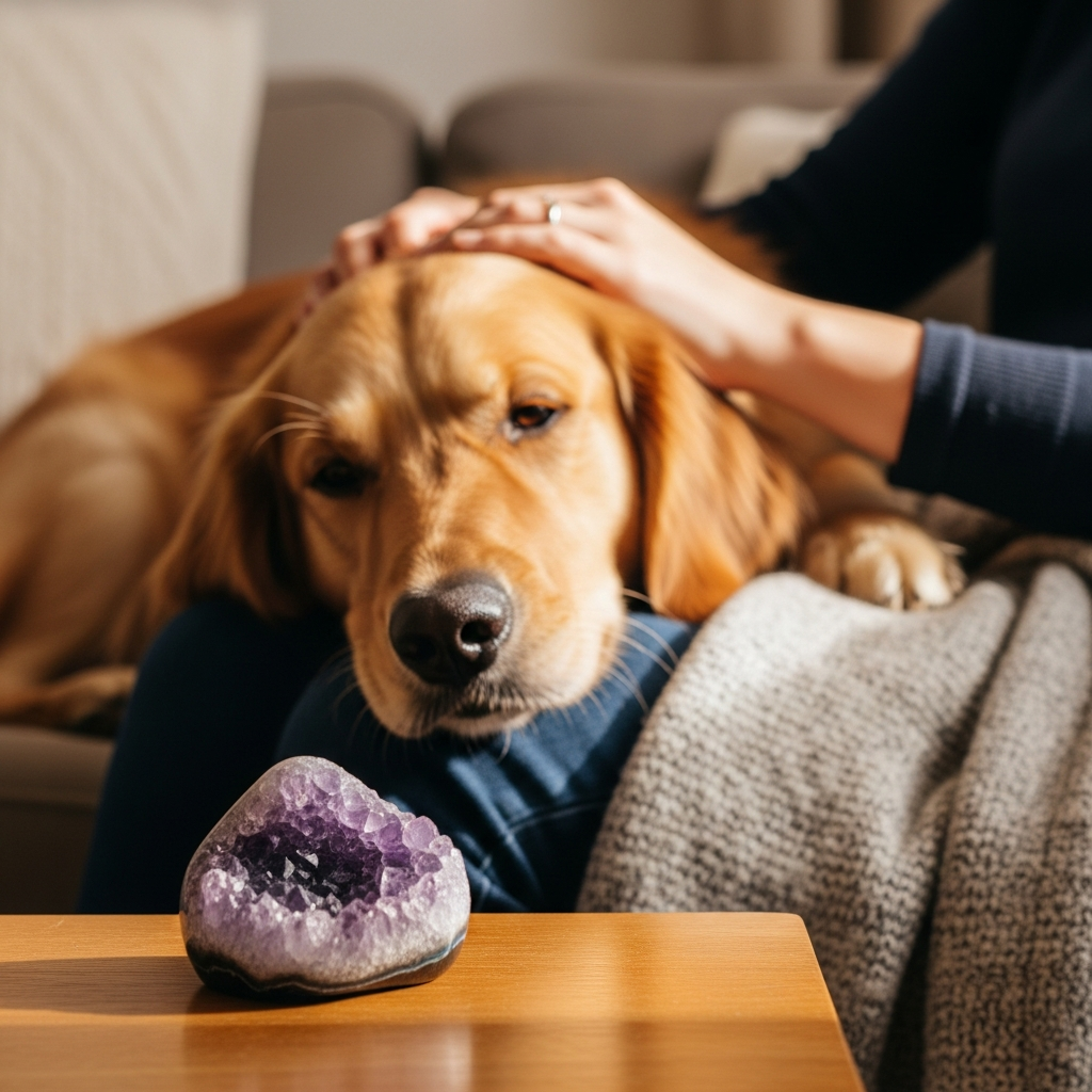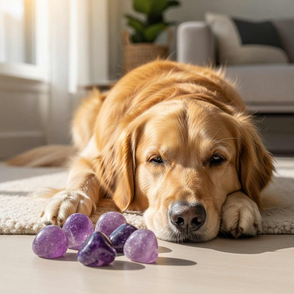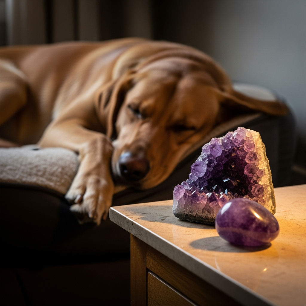 * **Associating the Crystal with Quiet, Safe Times:** If amethyst is present during your dog’s peaceful moments – naps, cuddle times, or quiet play – they may begin to link its presence with feelings of security and contentment.