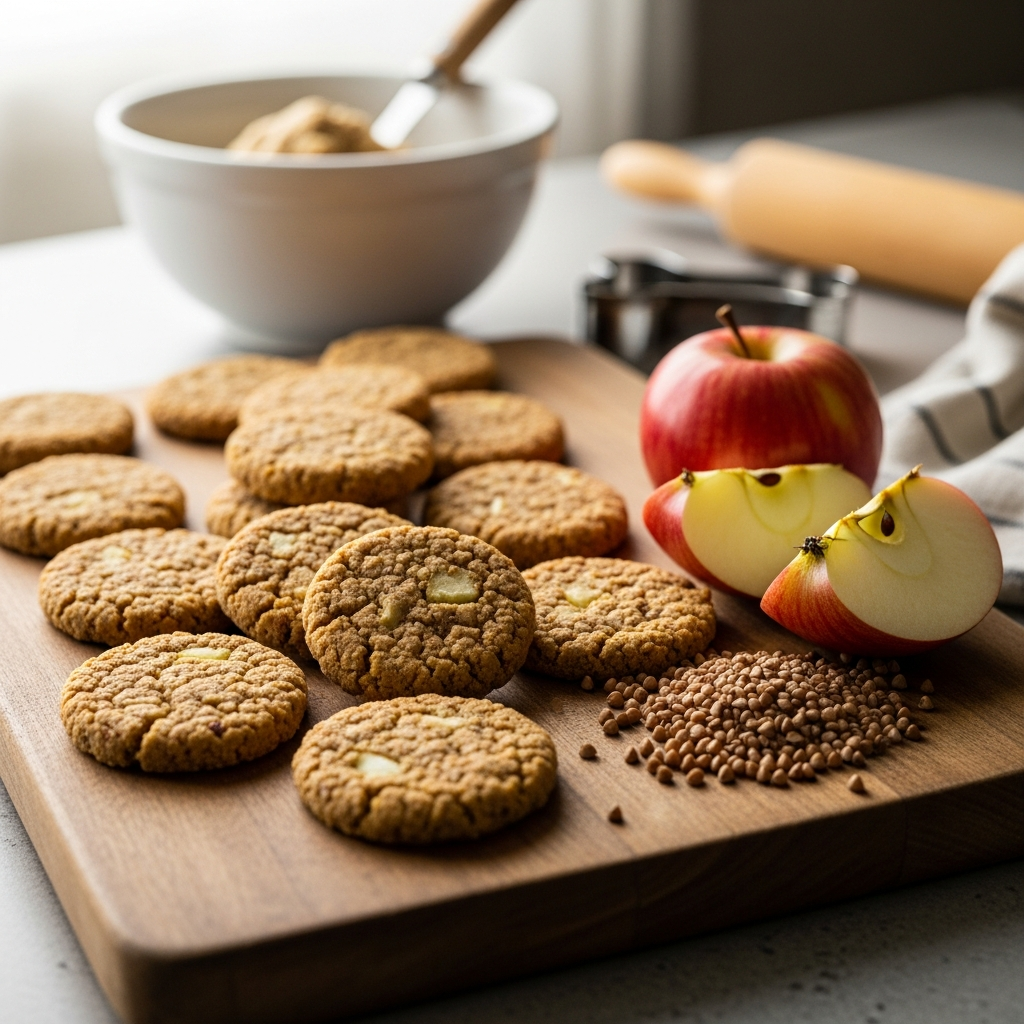 If your dog is trying apples or buckwheat for the first time, introduce these cookies slowly and watch for any signs of an allergic reaction or digestive upset. While both ingredients are generally safe, every dog is different.