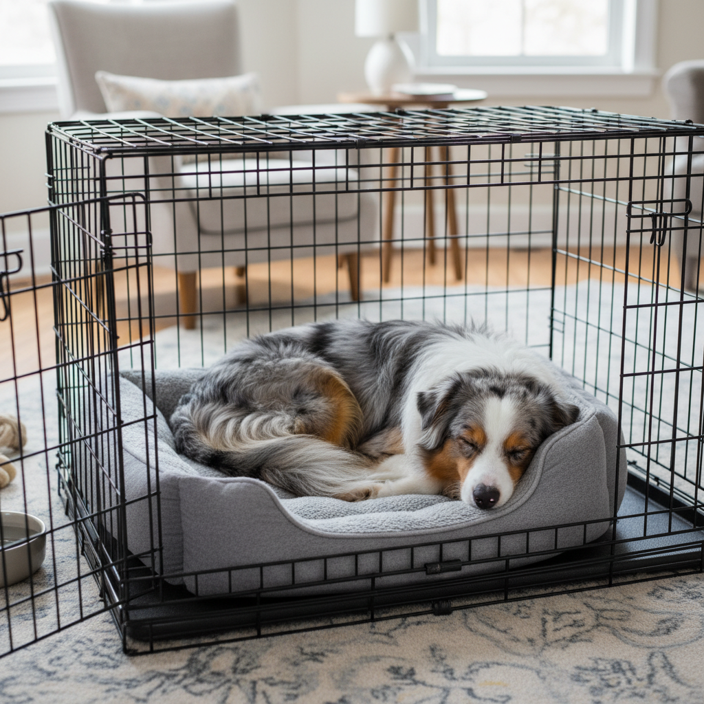Crate training, when done correctly, is not cruel; it provides your Australian Shepherd with a safe den, aids in house-training, and can prevent destructive behaviors when you can’t supervise them directly. It also offers a secure space for them to retreat to.
