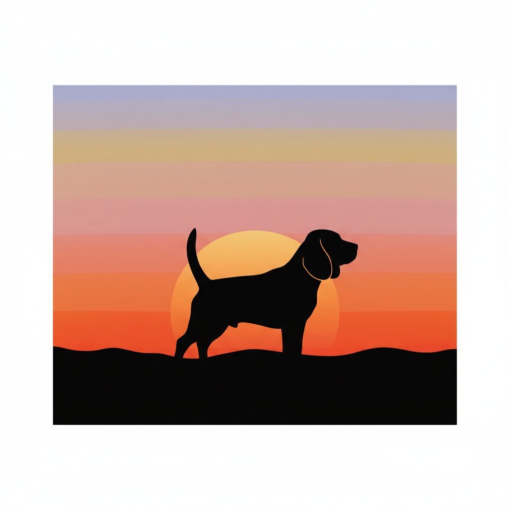 For a more artistic touch, this wallpaper presents a Beagle silhouette against a breathtaking sunset. It’s elegant, minimalist, and captures the beauty of the breed in a serene, almost majestic light. Perfect for a sophisticated look.