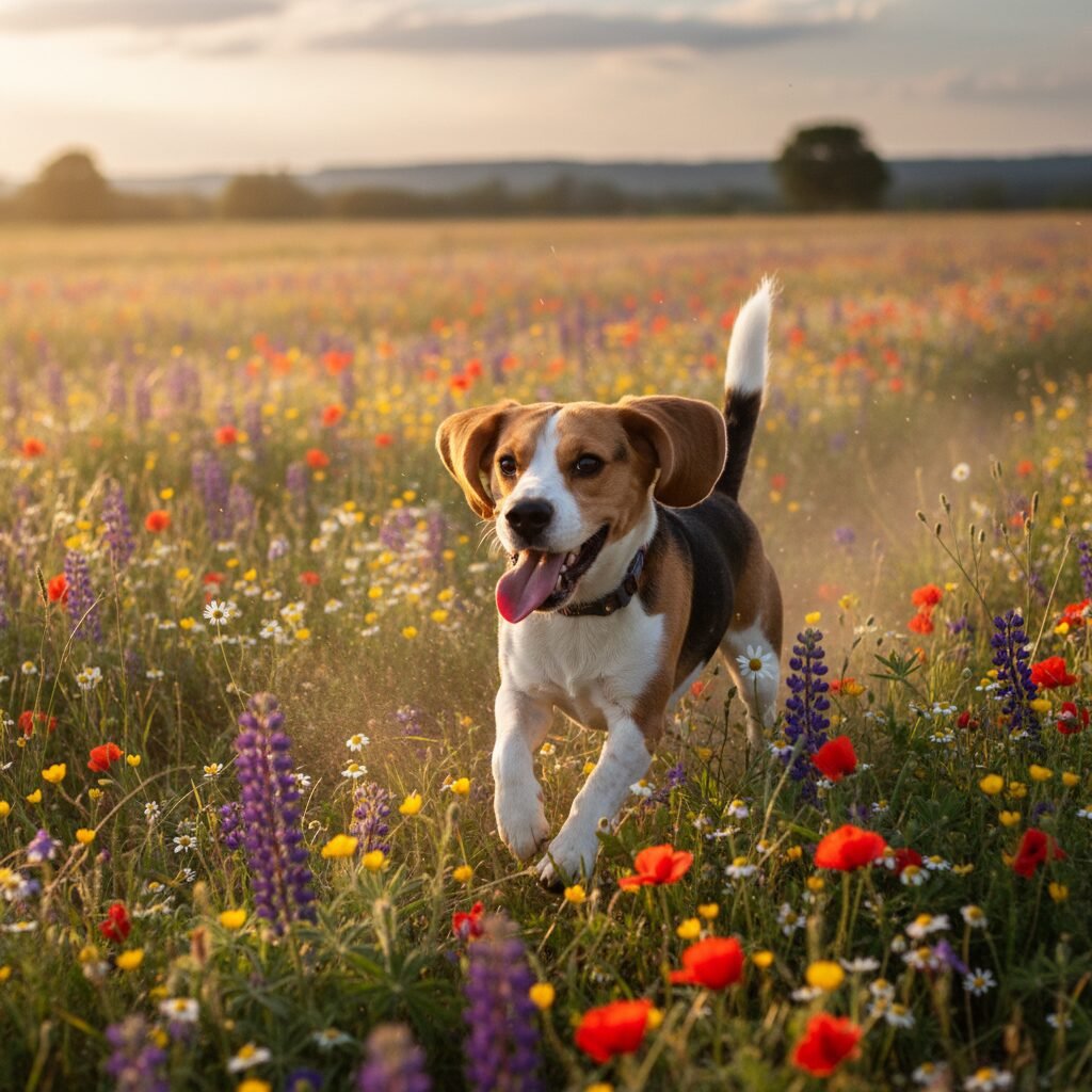 Capturing pure, unadulterated joy, this wallpaper features a Beagle frolicking through a vibrant field of wildflowers. It’s a celebration of freedom and happiness, reflecting the carefree spirit of our beloved hounds.