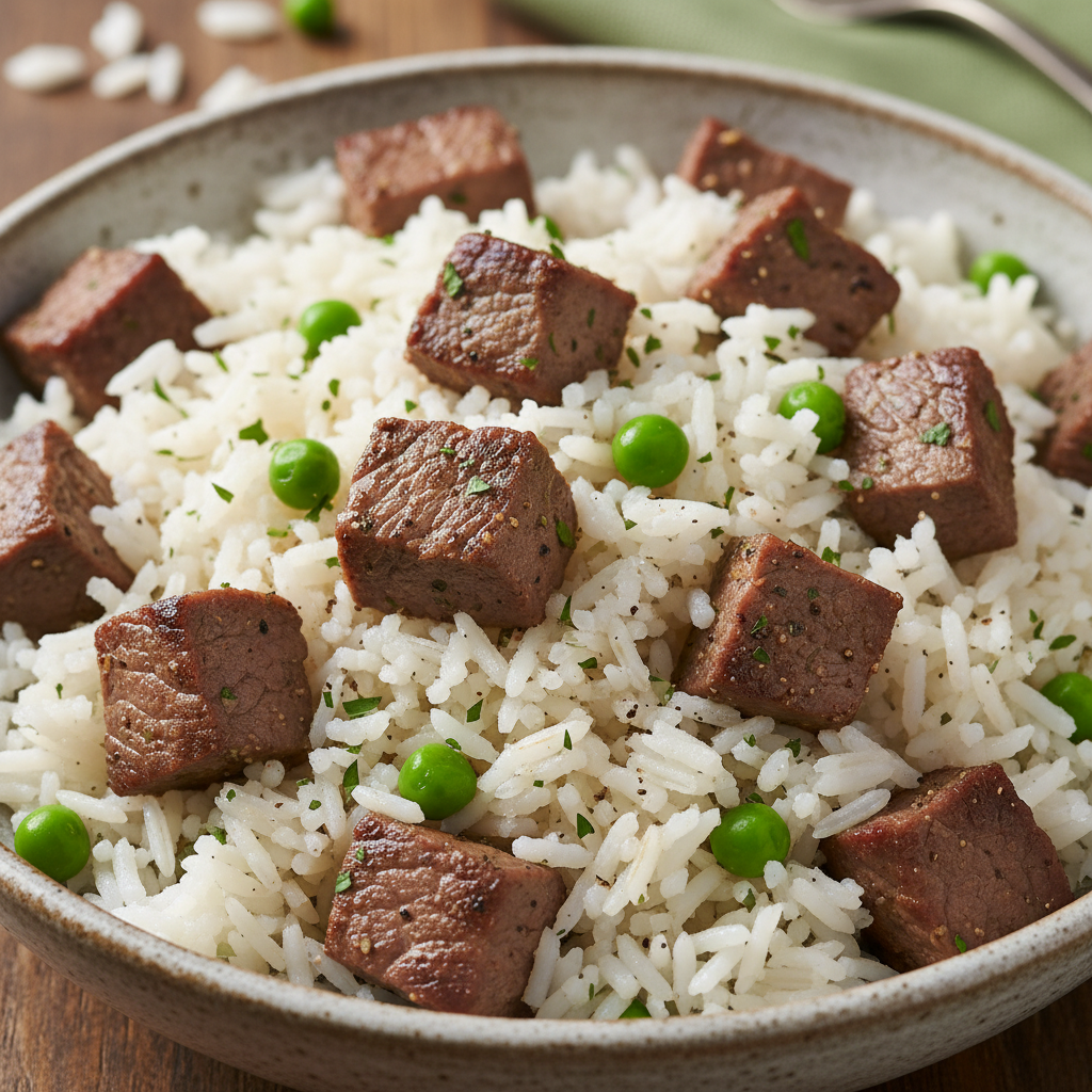 - Bring to a boil, then reduce heat to low, cover, and simmer for 20-25 minutes, or until rice is cooked and beef is tender.