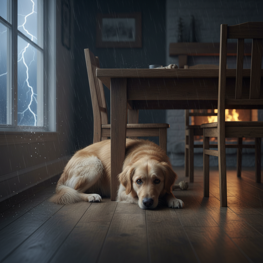 - Look for: Tucked tail, flattened ears, panting, pacing, hiding, destructive behavior.
