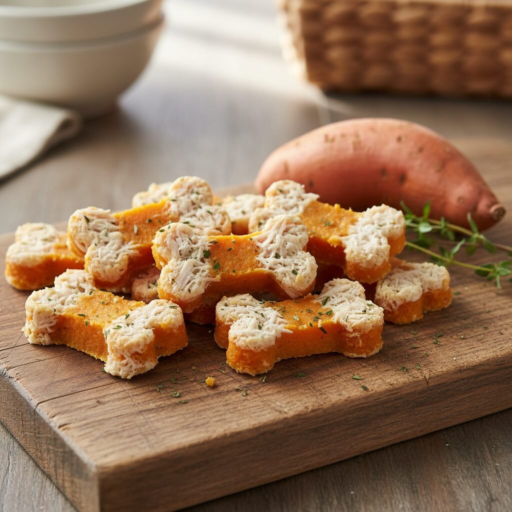 Sweet potatoes are a superfood for dogs, packed with vitamins and fiber. Combined with chicken, they make a nutritious and tasty treat.