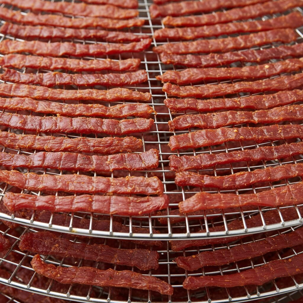 - Arrange the strips on a wire rack placed over a baking sheet (for oven) or directly on dehydrator trays.
