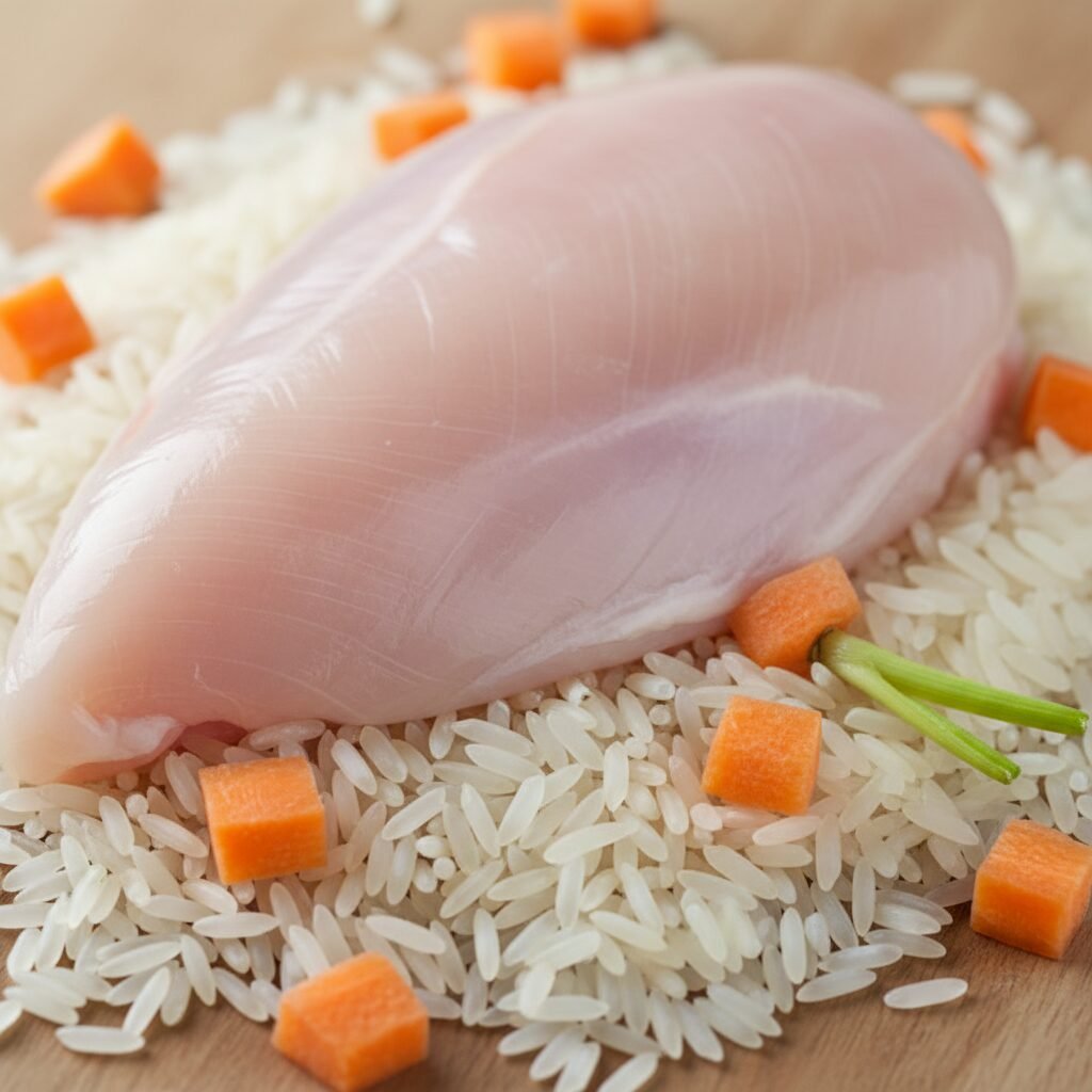 Crafting the perfect chicken and rice bowl starts with choosing the right, simple ingredients. Remember, what’s good for humans isn’t always good for dogs, so stick to the basics.