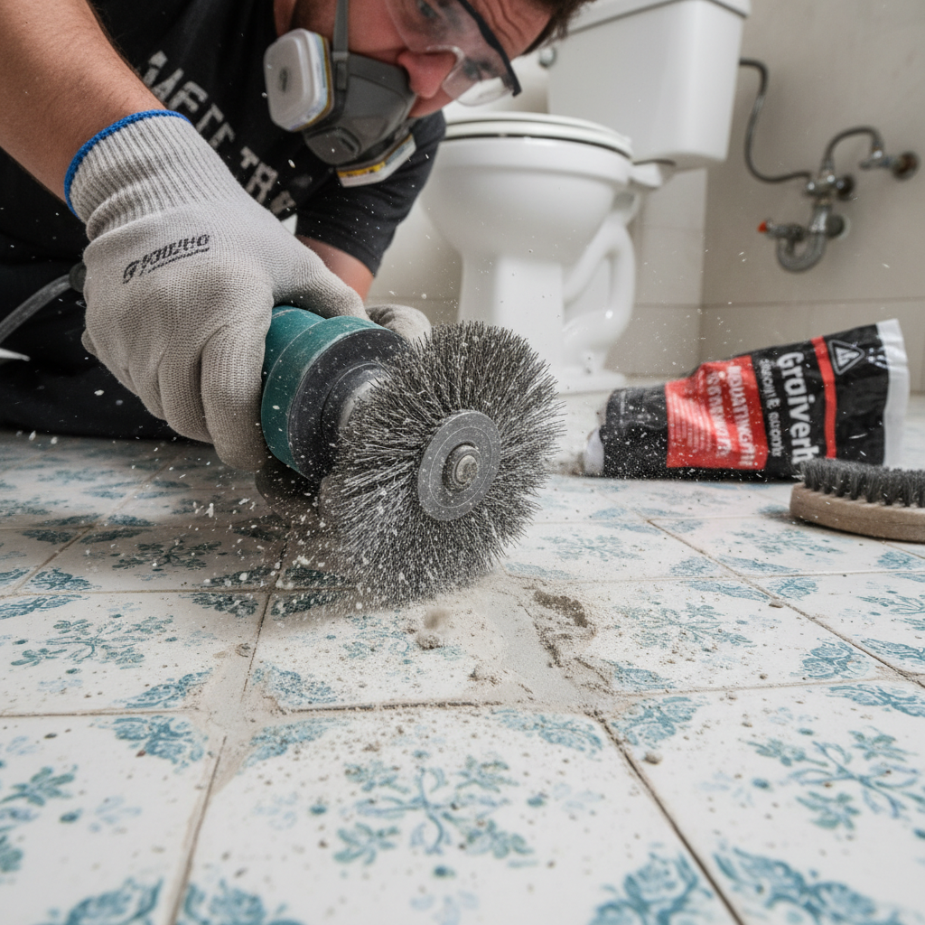 - Grout brush or old toothbrush A stiff-bristled brush is essential.