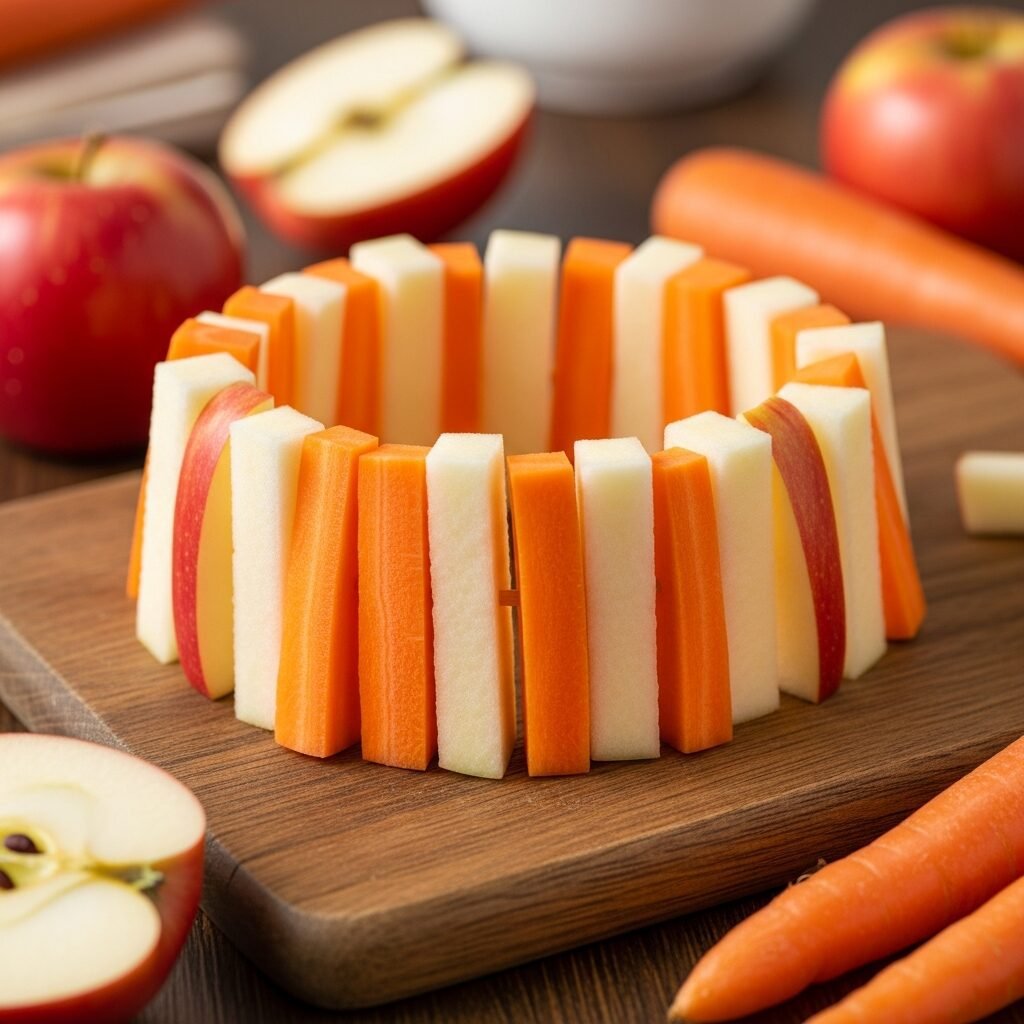 Apples are a good source of fiber and vitamins A and C, while carrots are rich in beta-carotene (which converts to Vitamin A) and provide a nice, firm texture for chewing.