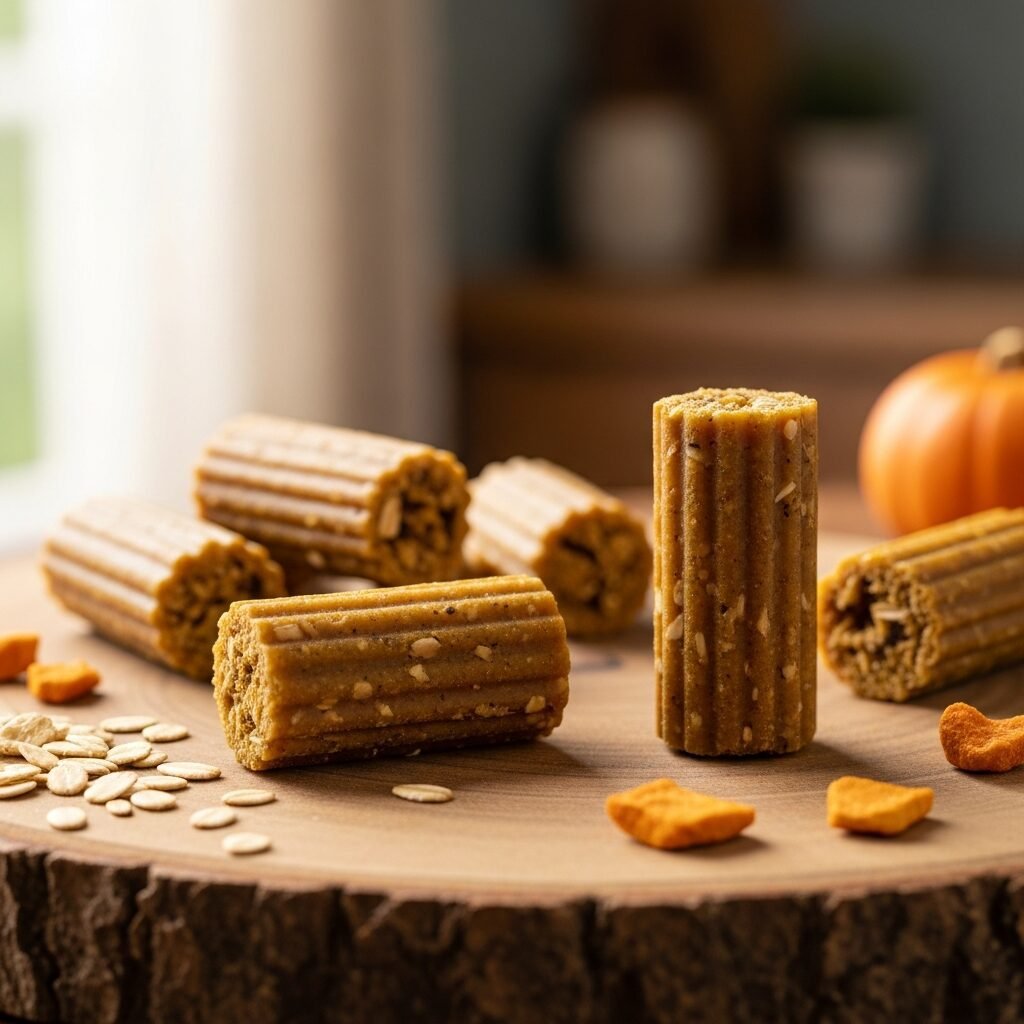 Pumpkin is wonderful for digestive health due to its fiber content, and oats are a gentle grain that provides energy and fiber. Together, they create a chew that’s both healthy and textured.