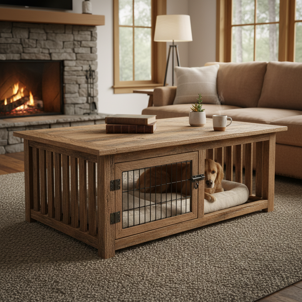 For a truly space-saving solution, consider a coffee table dog crate. This project usually involves building a robust wooden frame to house the crate, with a solid top for your coffee table needs. It’s an excellent choice for smaller living rooms where every piece of furniture needs to pull double duty.