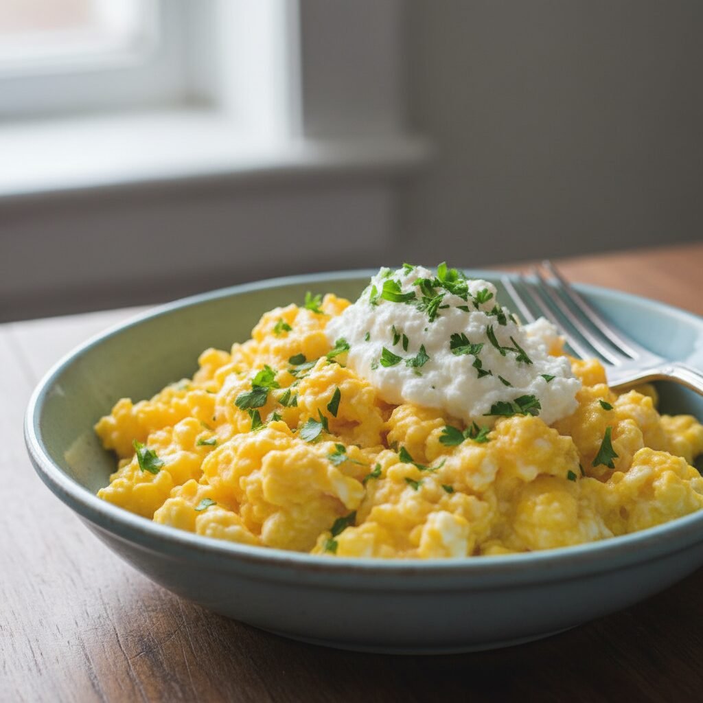 - Mix the scrambled eggs with the low-fat cottage cheese.