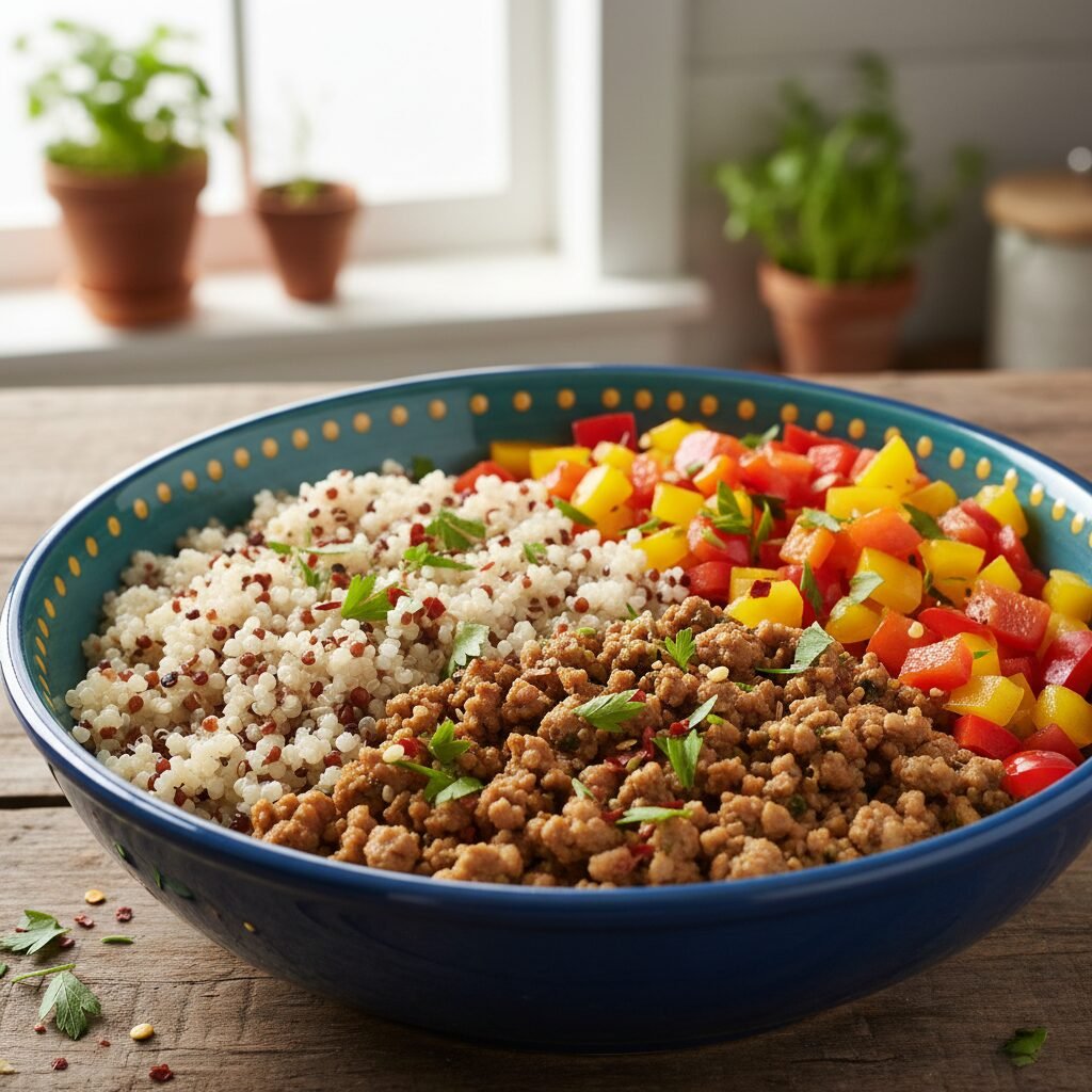 - Mix the cooked turkey, quinoa, and vegetables together.