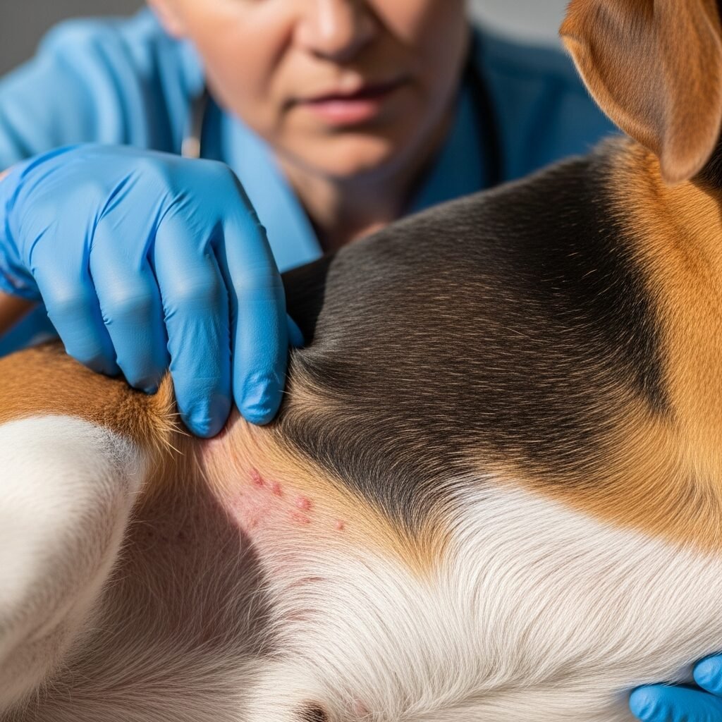 Many rashes, especially those around the tail base, groin, or hindquarters, are a direct result of parasitic infestations, most commonly fleas. Mites can also cause intense irritation and hair loss.