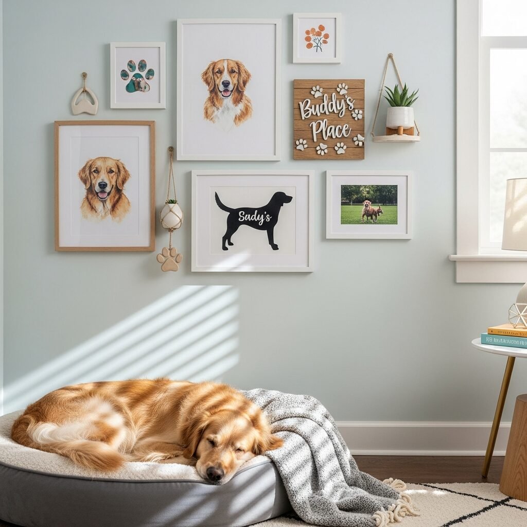 Apply vinyl decals of your dog’s breed silhouette to walls or furniture for a subtle yet stylish nod to your beloved companion.