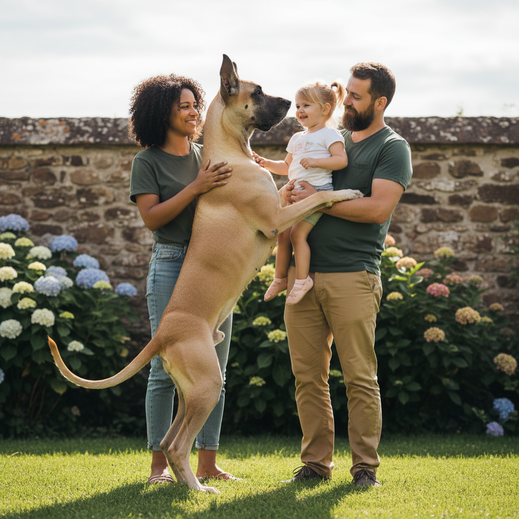 The Great Dane, often called the ‘Apollo of Dogs,’ is another gentle giant. Their sheer size is often enough to deter intruders. Despite their imposing stature, Great Danes are incredibly sweet, affectionate, and patient, especially with children. They are devoted to their families and will instinctively protect them if necessary, making them loving and formidable guardians.