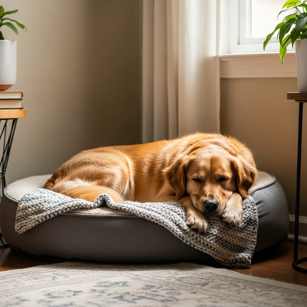 Ensure your dog has a comfortable, safe space where they can relax when you’re not home, like a crate, a designated room, or a comfy bed. This space should be their sanctuary. Consistency in routines also helps, so they learn when to expect you to leave and return, reducing uncertainty.