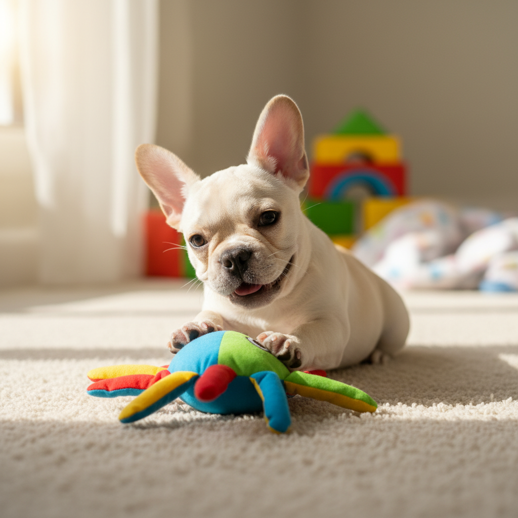 This wallpaper captures the boundless energy and irresistible cuteness of a French Bulldog puppy mid-play. Perfect for bringing a burst of youthful joy to your screen.