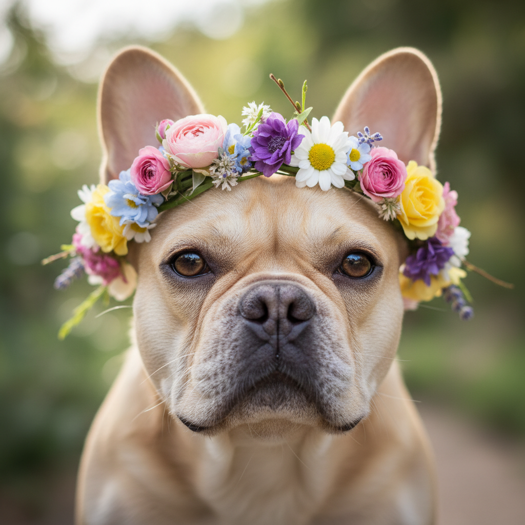 A whimsical and sweet choice, this image features a French Bulldog adorned with a beautiful flower crown, perfect for adding a touch of enchantment to your device.