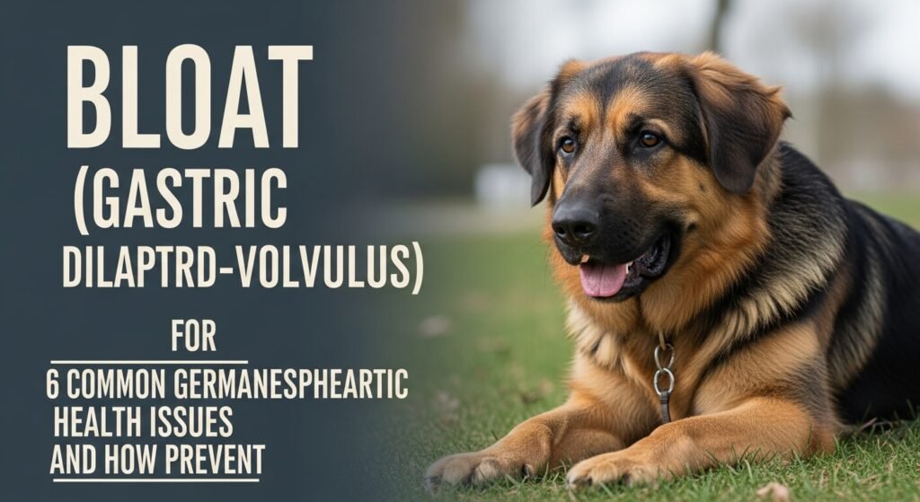 Bloat is a life-threatening condition where the stomach fills with gas, twists, and traps blood and air. Large deep-chested breeds like German Shepherds are at high risk.