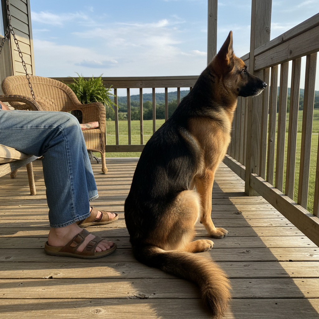 Showcasing the gentle, loyal side of German Shepherds, perfect for a calming effect.