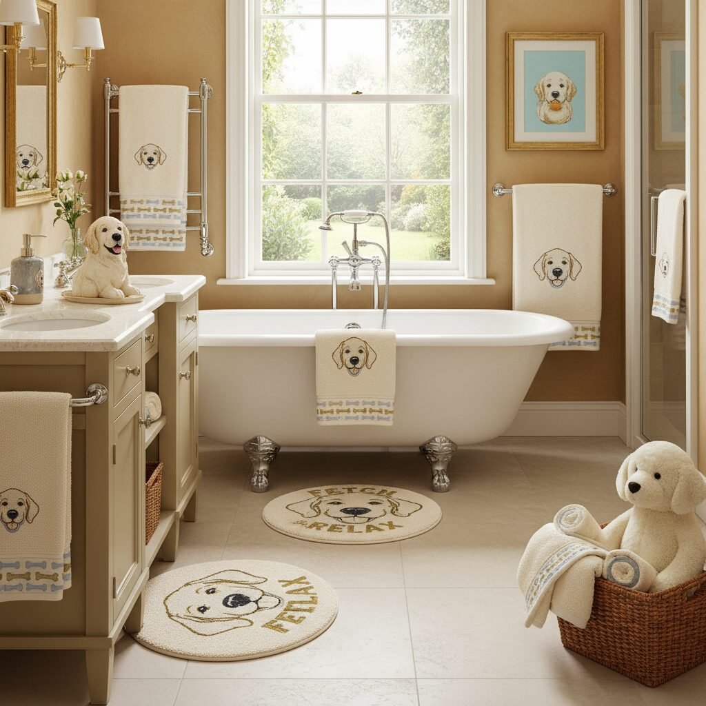 - Towels and Bath Mats: Look for towels with paw prints, bone motifs, or even embroidered Golden Retriever designs.