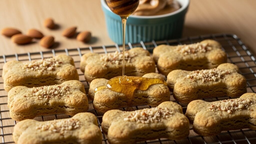 Homemade dog treats are a wonderful way to give your pup fresh, wholesome snacks made from real, natural ingredients. These 5-ingredient honey and almond butter biscuits are crunchy, aromatic, and packed with flavors dogs love. With a simple ingredient list and an easy baking process, these biscuits are perfect for dog parents who want healthy, delicious treats without preservatives, fillers, or artificial additives.