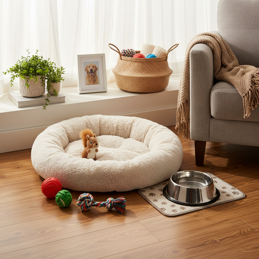 A well-thought-out pet zone helps manage pet clutter and gives your dog a predictable, safe space of their own.