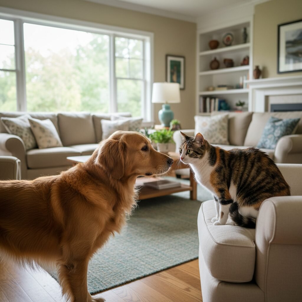 - Designate Zones Create specific areas for each pet- a crate, a separate room, a cat tree, or a dog bed in a quiet corner.