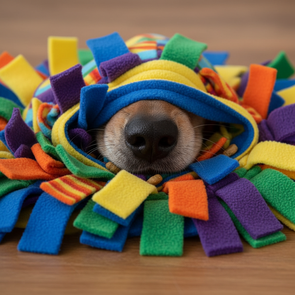 Snuffle mats are fabric mats with many folds and pockets designed to hide treats or kibble. They leverage your dog’s incredible sense of smell and natural foraging instincts.