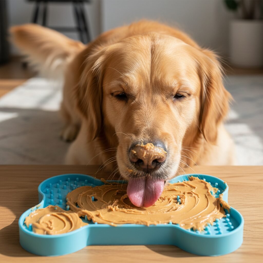 Lick mats are textured silicone mats designed to be smeared with soft, spreadable treats like peanut butter, yogurt, or pumpkin puree. The act of licking is incredibly soothing and mentally engaging for dogs.