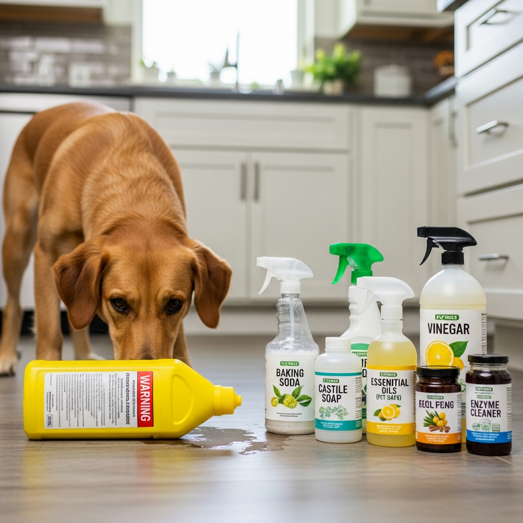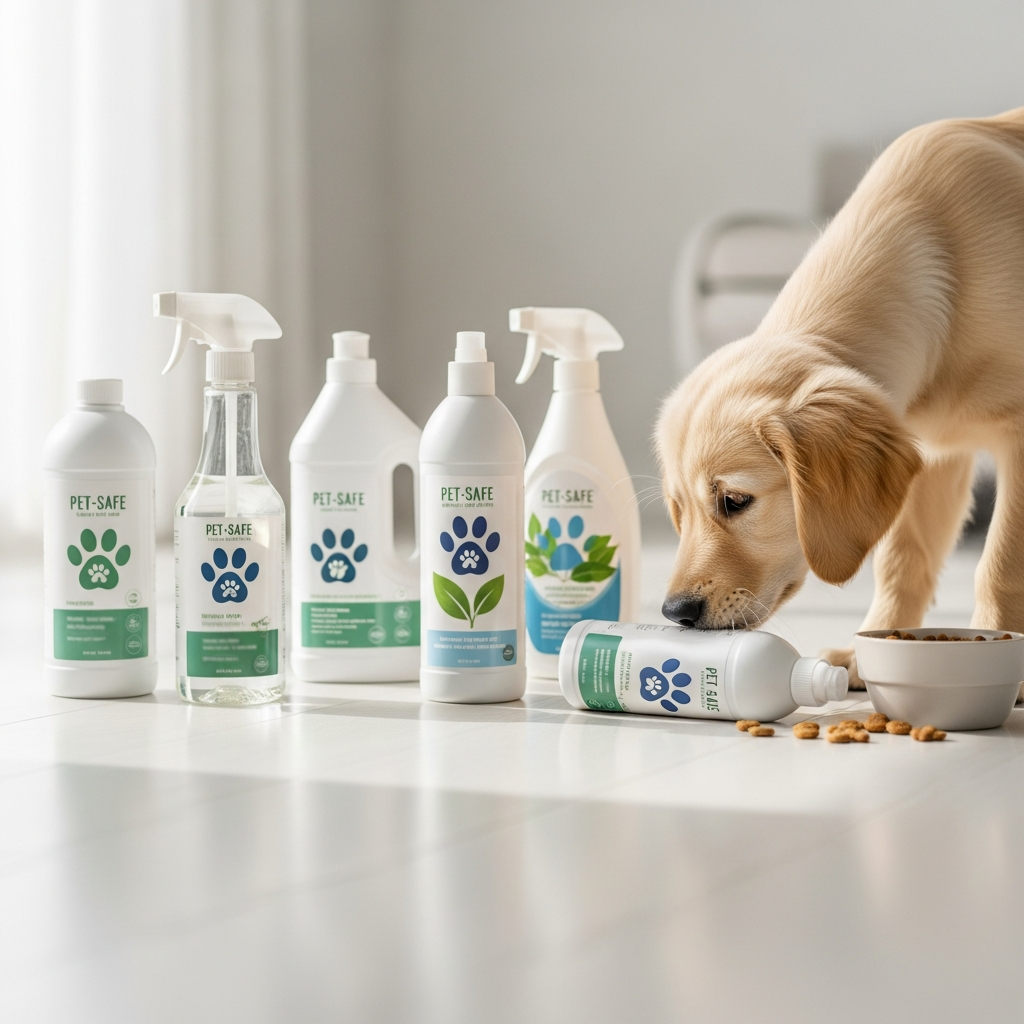 | Enzyme Cleaners | (Commercial pet-safe enzyme cleaner) | Breaking down organic pet messes, odors | Pet stains on floors, carpets, upholstery |
