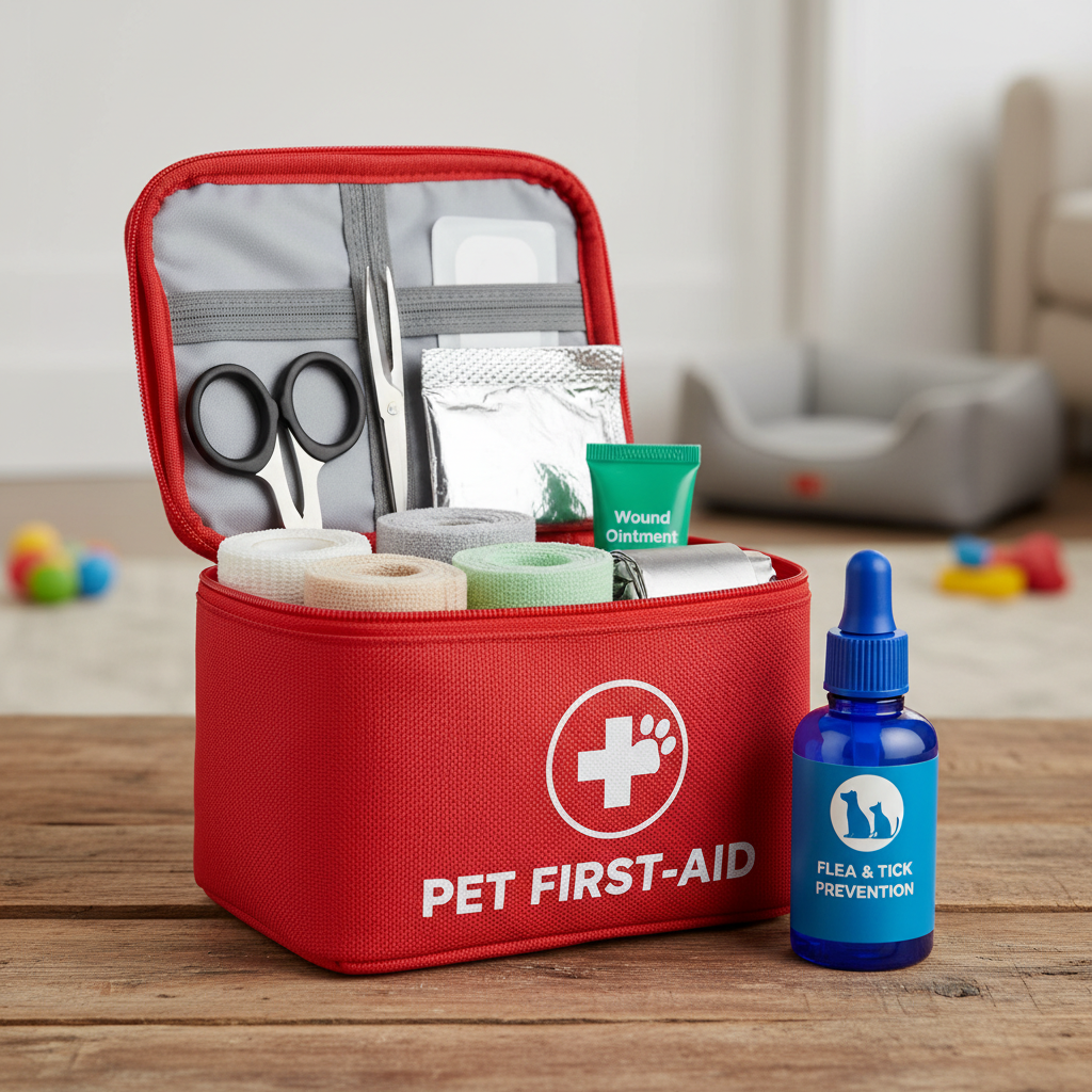 - First-Aid Kit: Include items like gauze, antiseptic wipes, pet-safe adhesive tape, and tweezers.