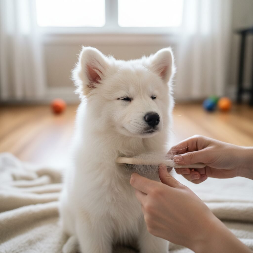 Introducing grooming early on helps your puppy get comfortable with the routine and keeps them healthy and clean. Regular grooming prevents mats, reduces shedding, and allows you to check for any skin issues or parasites.