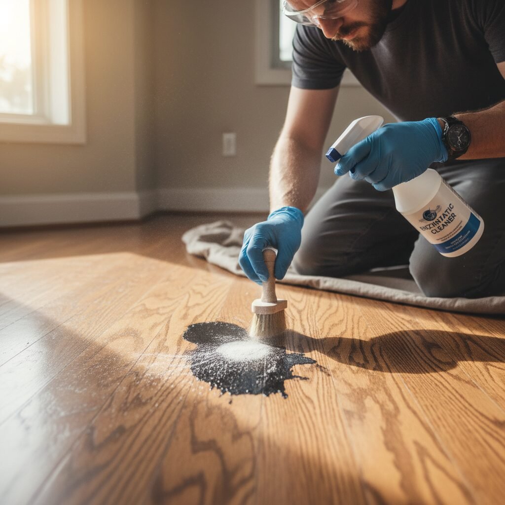 - Apply an Enzymatic Cleaner This is your secret weapon. Enzymatic cleaners contain beneficial bacteria that break down the uric acid crystals in pet urine, which are responsible for both the stain and the odor. Follow the product instructions carefully. Typically, you’ll spray or pour the cleaner onto the affected area, ensuring it saturates the wood as deeply as the urine did.