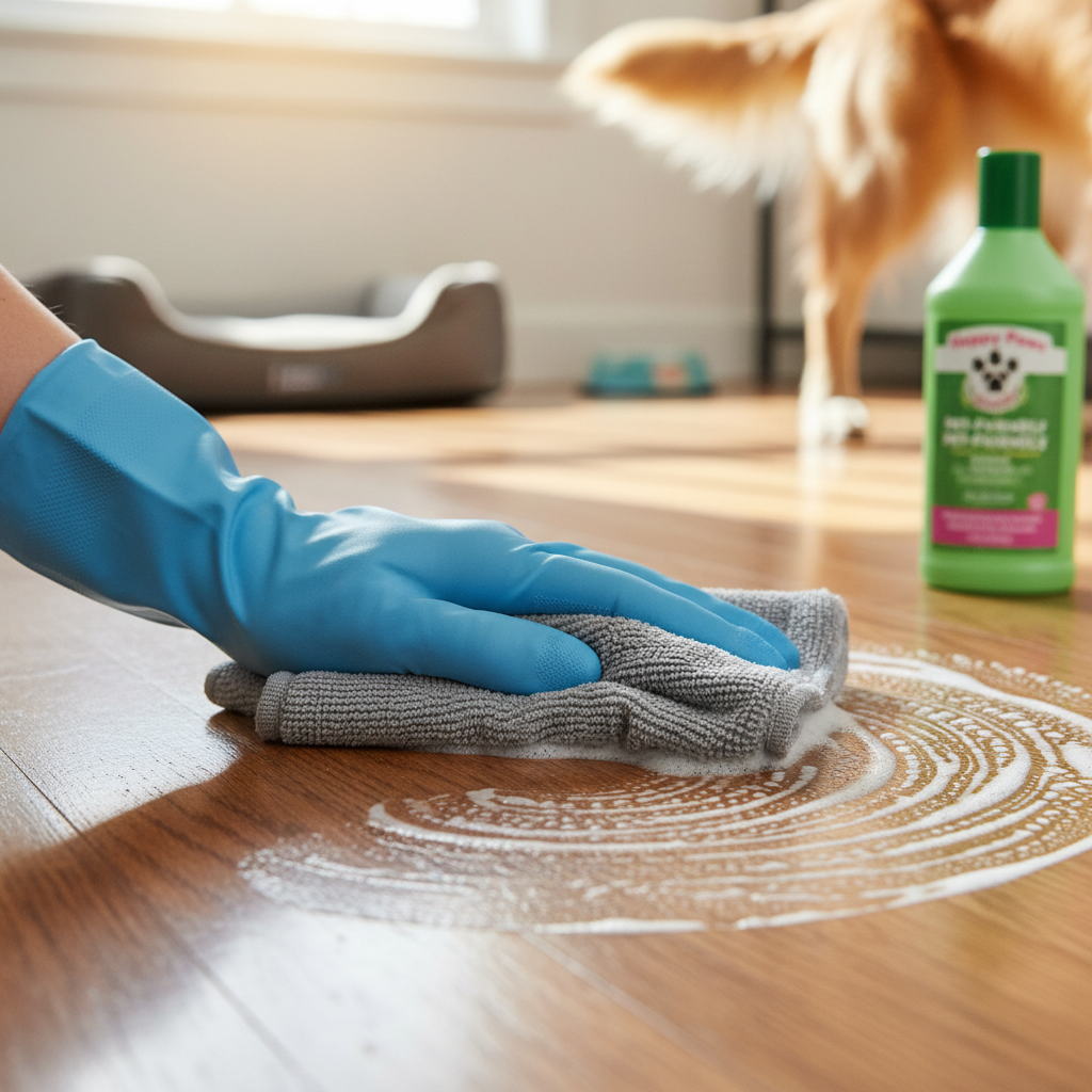 - Clean Floors Regularly Mop hard floors (tile, hardwood, laminate) with a pet-safe cleaner. A solution of equal parts white vinegar and water can be very effective for neutralizing odors, but always test in an inconspicuous area first for delicate surfaces.
