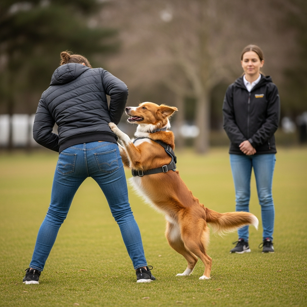 When you know guests are coming over, put your dog on a leash a few minutes before they arrive. This gives you direct control. As your guest approaches the door or enters, keep your dog close to you. If they start to lunge or jump, a gentle, firm leash correction can redirect them. The moment their paws are on the floor, reward them with praise or a treat.