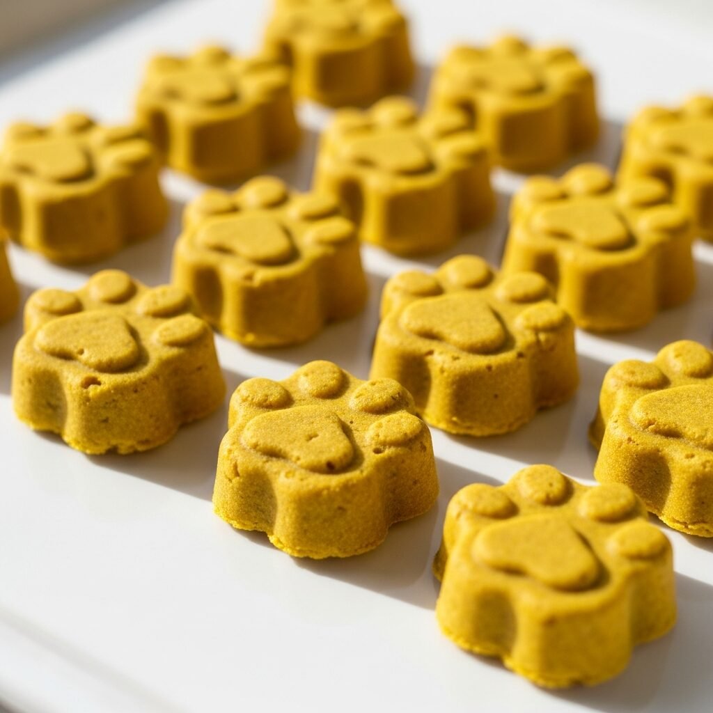 Healthy fats are essential for a shiny coat and healthy skin. These no-bake chews use coconut oil as a base. Melt half a cup of organic coconut oil and stir in one tablespoon of turmeric powder. Pour the golden liquid into small ice cube trays or bone-shaped molds. Refrigerate until solid. Because curcumin is fat-soluble, the coconut oil acts as a perfect delivery system, ensuring your dog gets the most out of every bite. Feed one small cube daily as a supplement.