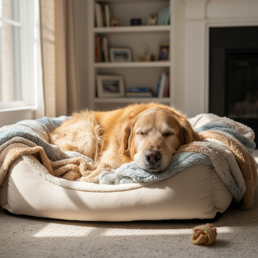 Provide a quiet, comfortable, and safe space for your dog to sleep. This could be a cozy dog bed, a crate, or a designated spot in your home. Ensure it’s away from high-traffic areas and loud noises, allowing for uninterrupted sleep.