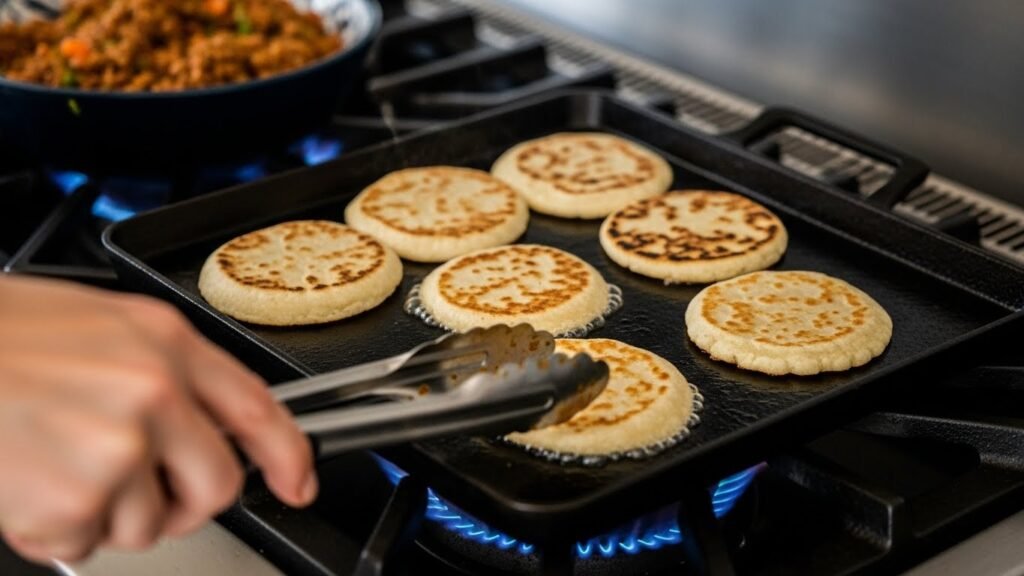 Place one tortilla in the pan and cook for 30–45 seconds on each side.