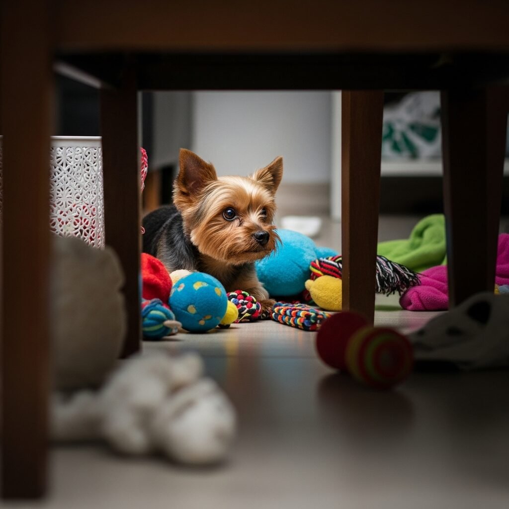Ensure your Yorkie has a warm, draft-free place to sleep, perhaps with a cozy bed or blanket. During colder months, consider a dog sweater or coat for walks. To prevent separation anxiety, practice leaving them alone for short periods, gradually increasing the time. Provide engaging toys and a comfortable crate as a safe den. Puppy-proof your home thoroughly, as their small size allows them to squeeze into tight spaces and access dangerous items that larger dogs might miss.